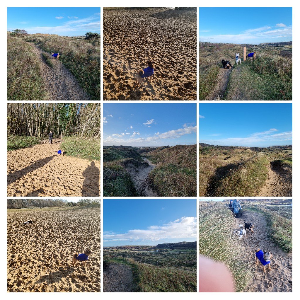 A doggy outing (Oscar, Bruce and Monty doing a bit of bonding, well Bruce and Monty as Oscar is an anti social grump – bit like me if truth be told) to the dunes at Merthyr Maw (could happily live in that village, but regrettably don’t have the shed loads of cash required)