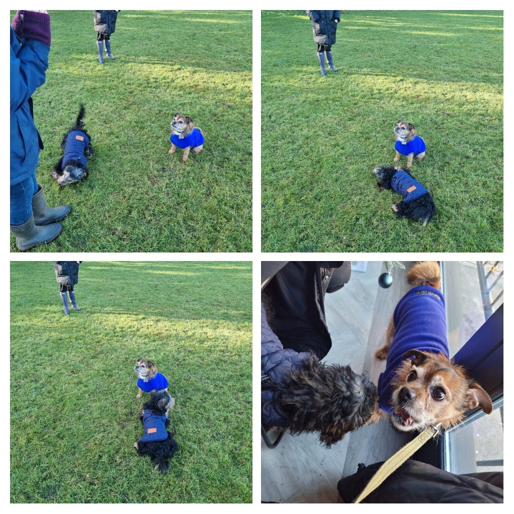 Oscar very much enjoyed both biscuits, taking full advantage of Bruce’s slight hesitancy, with a “You snooze you lose” snatch and grab. Full on smug face on him after that, with J then proceeded to stuff both their faces with treats. Oscar has worked out very quicky that J is a bit of a feeder and very much a soft touch treats wise.