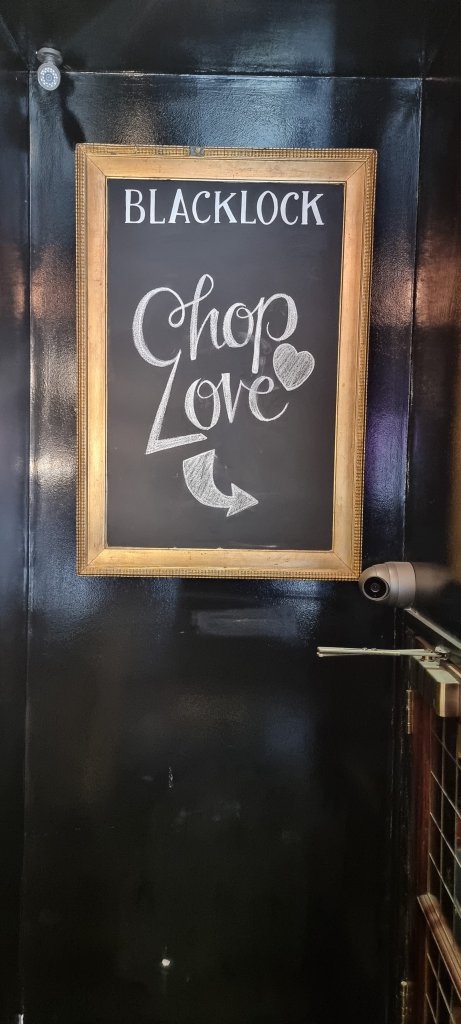 The fascade and entrance is pure hole in the wall and gives no indication of what lies beneath, other than the “chop love” sign. Given Soho’s somewhat seedy past reputation, for a county bumpkin like me, this could have rung a few alarm bells as to whether I had got the right place (prior to Blacklock the site was apparently a brothel and then a lap dancing club – so a very cheeky chop(per) shop back in the day).