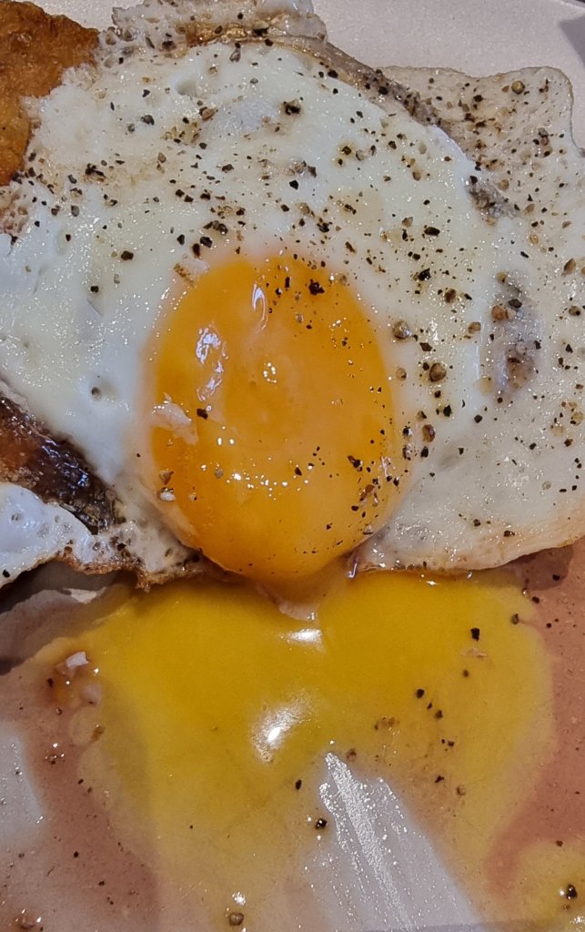 The eggs (x 2) had a lovely runny yolk, which delivered a lipid golden pool on being pieced.