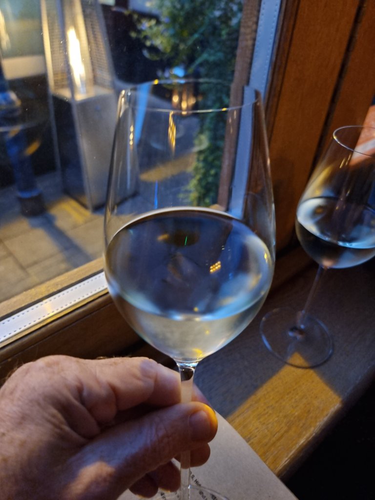 A rather fine glass of Jim Barry Assyrtiko 2019 (Ā£9 a glass, Ā£50 a bottle – retails at around the Ā£22-Ā£23 mark). Nice orchard fruits and citrus, with a flinty core of minerality, made this a pleasing aperitif.