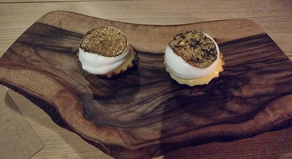 Pretty as a picture, we were advised to eat it in one bite. Lovely sweet meringue with a touch of char from the application of the ember, a rich tart yuzu curd and an impossibly light pastry case. How it kept together under the weight of the curd and meringue is a mystery to me.