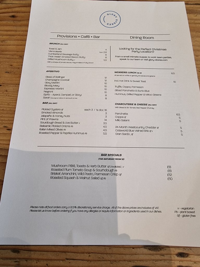 Now I have broken my Glory Stores duck, I shall undoubtedly be back. Hopefully next visit it will be for a wine or two as well as food. My lunch there certainly perked up this (occasional) worker.