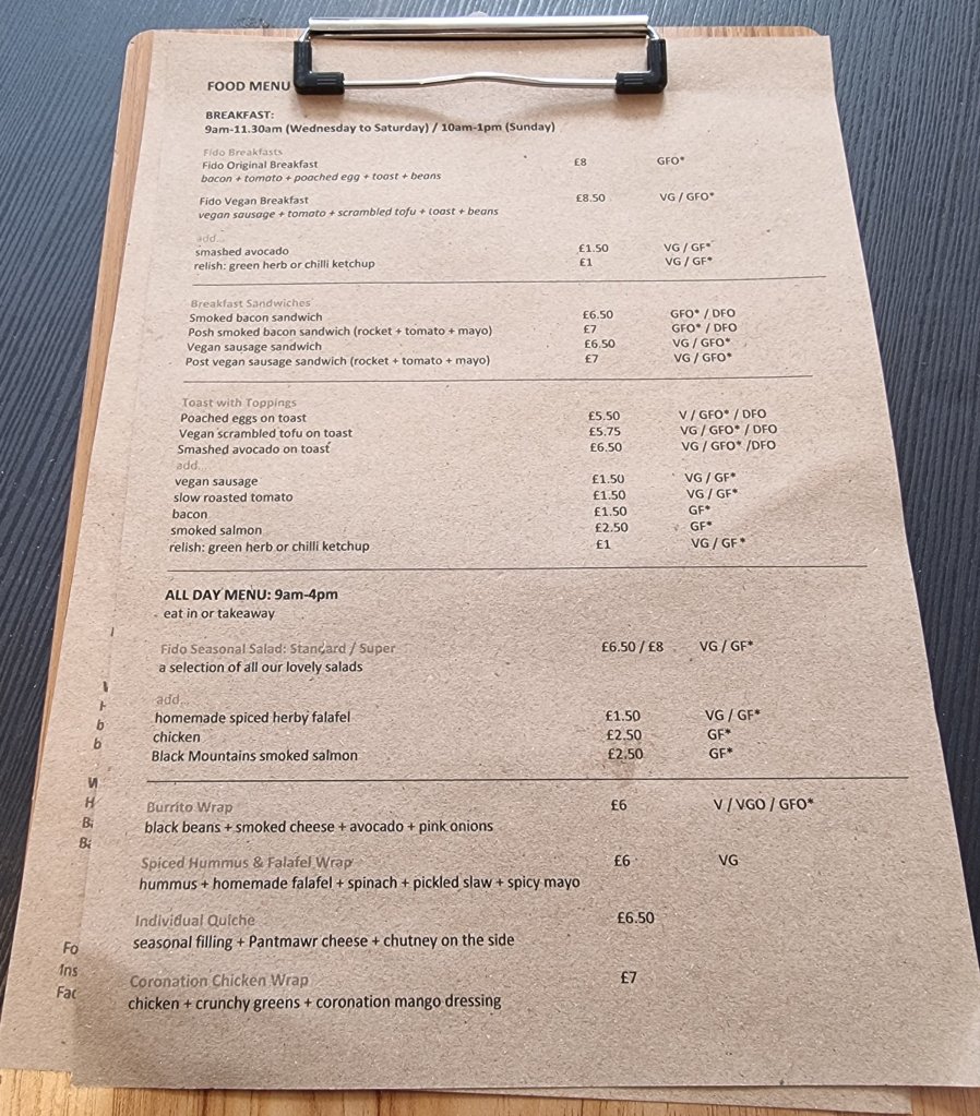 Being a dog owner (and generally, a few exceptions aside, preferring the company of dogs to humans), as well as a food obsessive, I am always on the look out for dog friendly place to eat and Fido (in the unit in Pontcanna that use to be occupied by Kemi’s) looked to fit the bill nicely.