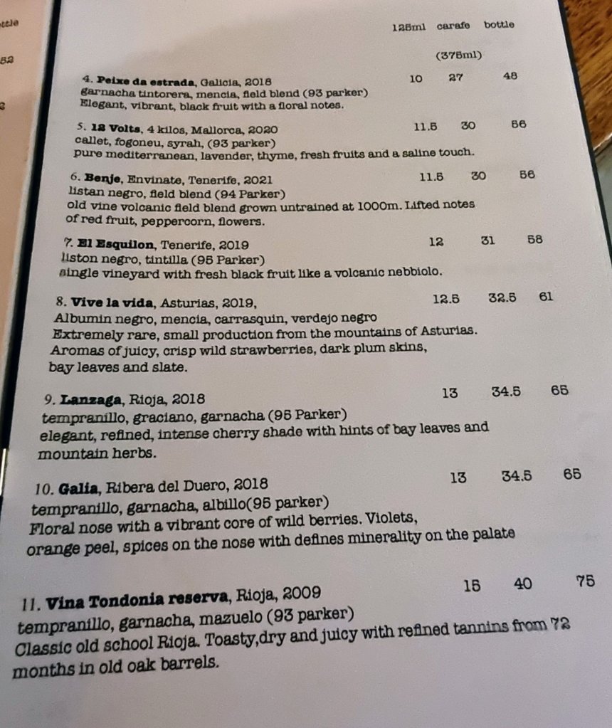 Add to that a interesting and thought provoking wine list and you have a “muy bueno” all round offering for a Hispanophile like me.