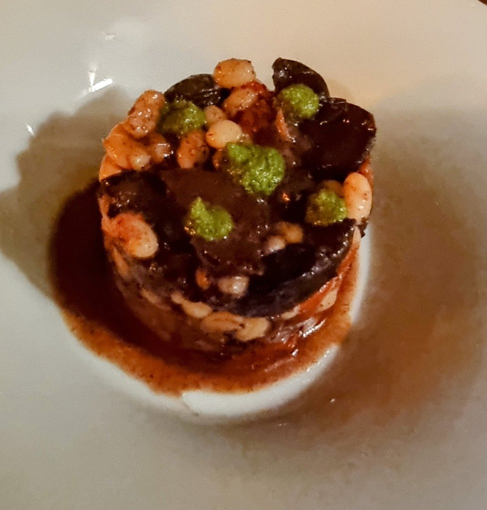 A empretat salad, consisted of white beans (good texture to these, yielding to the bite, but avoiding unpleasant mushiness), smokey chargrilled peppers and floral, earthy, black olives.
