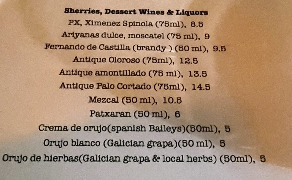 The dessert menu, however, referred to the PX pour being 75ml (at, surprise, surprise, the same price).