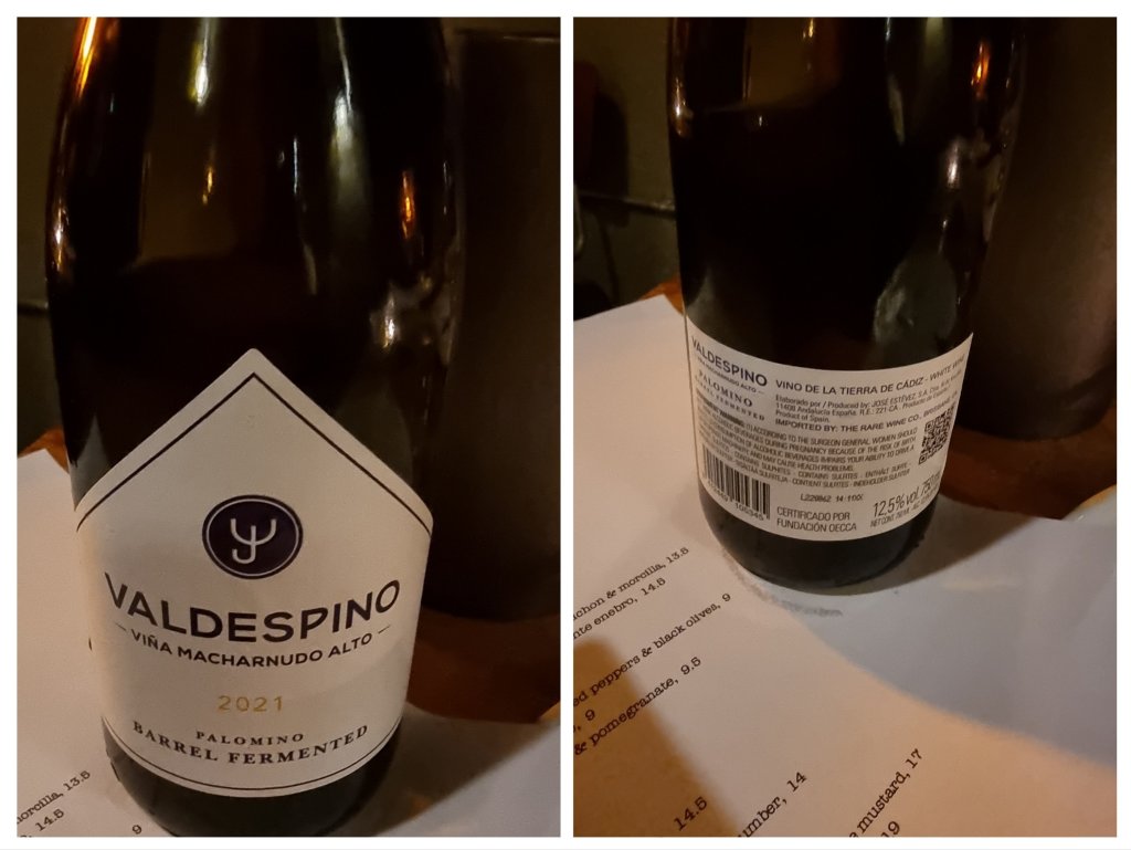 First up we had an unfortified (so not sherry) palamino from sherry country. These are seemingly very on trend at the moment, with it being argued they will appeal to a wider audience than sherry (much to my horror and despite my best efforts sherry sales continue to slide)
