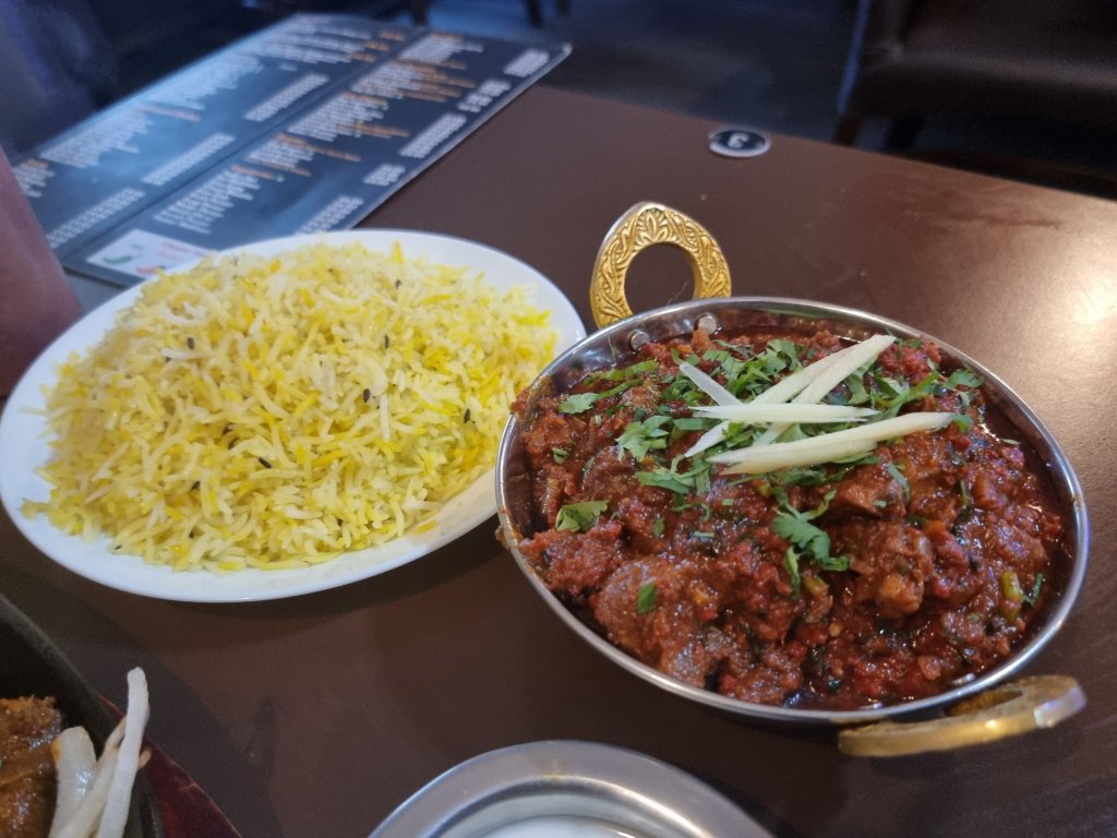 Lovely and plentiful chunks of tender meat, with a rich spicy (chilli, cardamon and lots of it, cloves and ginger) gravy that was choc a bloc full of lamb/mutton mince (suspect latter and all the better for it). All the spices made it a really fragrant curry.