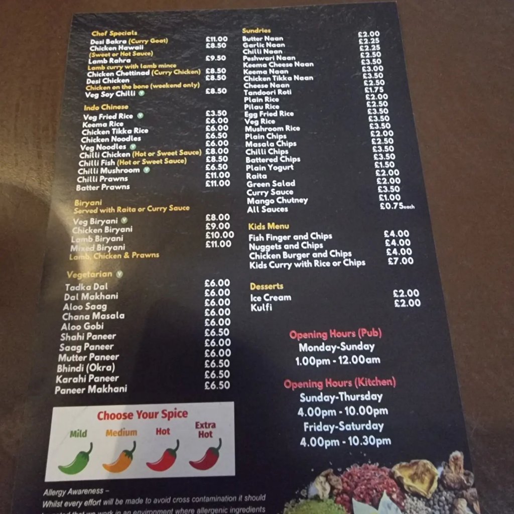 The place has been bought and made into a desi pub. As such it does Indian food (eat in and take away) and not being bothered to cook we though why not give it a go.