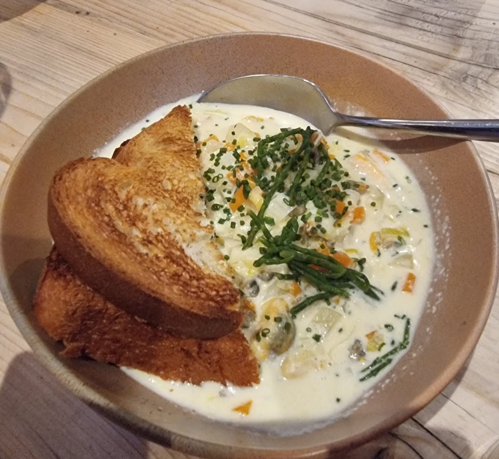 Would I have chosen brioche as the bread accompaniment? Perhaps not, with its innate sweetness and the richness of the chowder – cornbread for me with a chowder, but it went down well with the person who predominantly ate it.