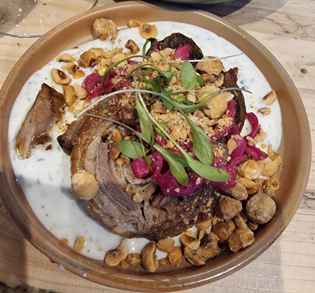 Copious amounts of toasted hazelnuts added both texture and an extra flavour profile. Pickled red cabbage and a labneh added a touch of sourness and tang, both acting as a welcome counterpoint to the richness. The labneh was a bit thinner than I generally expect, being more a buttermilk consistency, but I actually think that benefited rather than detracted from the dish. Really good this and excellent value for the ÂŁ9 price tag.