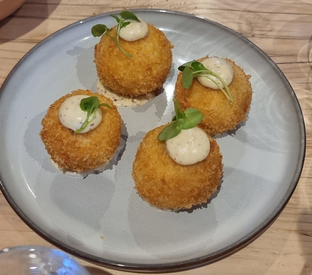 Leek potato and cheddar croquettes (ÂŁ2.50 a pop) had a nice crisp outer shell and a velvety interior. A good alium hit from the leeks and a punchy mustard blob underneath added nicely to the mix.
