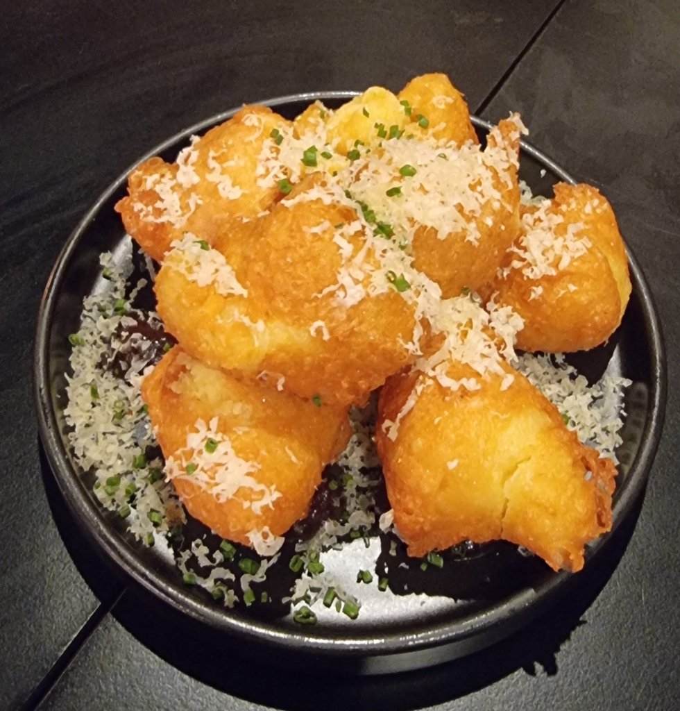 A generous portion of choux cheese puffs arrived next. I had been expecting 3 and was very pleasantly surprised by the rather bountiful plate (although 7 is a rather odd number for a sharing dish).