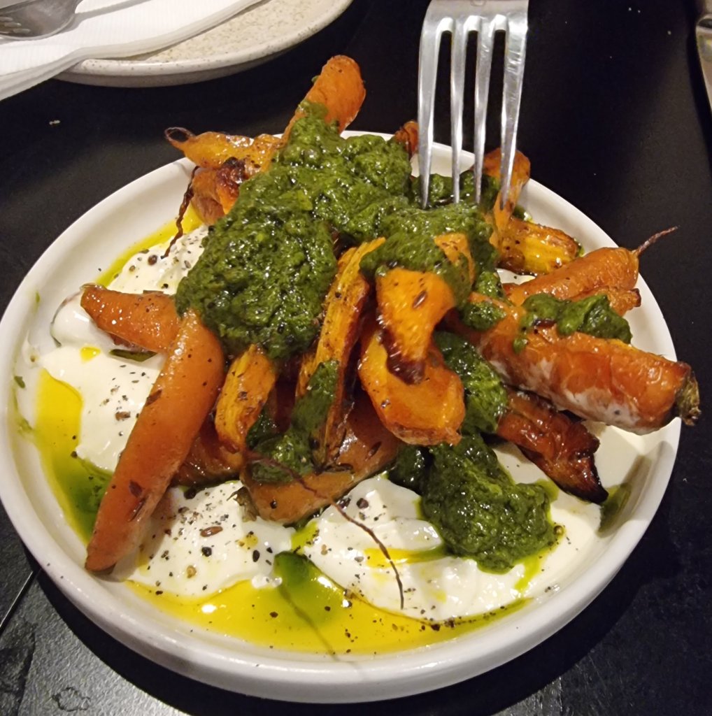 Topping and tailing aside, the salsa verde had a nice fresh zing to it and the slight tang of the whipped Homewood feta (pretty sure you can’t use that name, unless it comes from Greece, due to PDO rules) worked very well as against the sweetness of the carrots