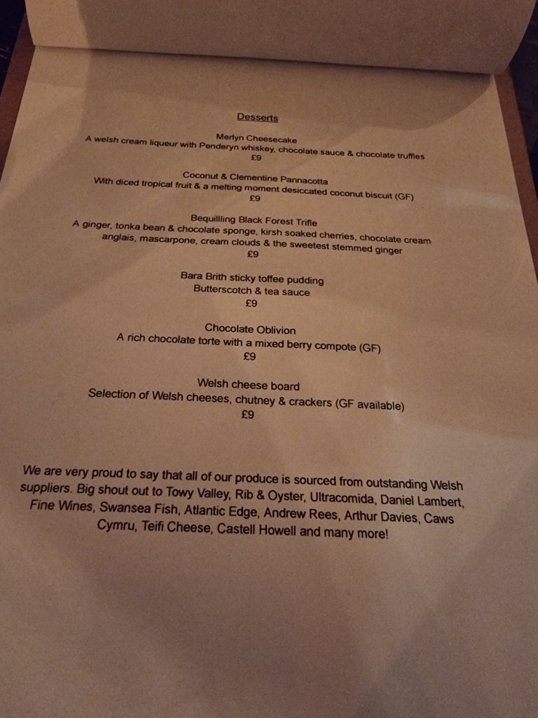 On the wider food front, reference is made (in the explanation of what to expect) to Welsh tapas, a use of that term that I can’t say I am massively keen on (but I am a miserable pedant).