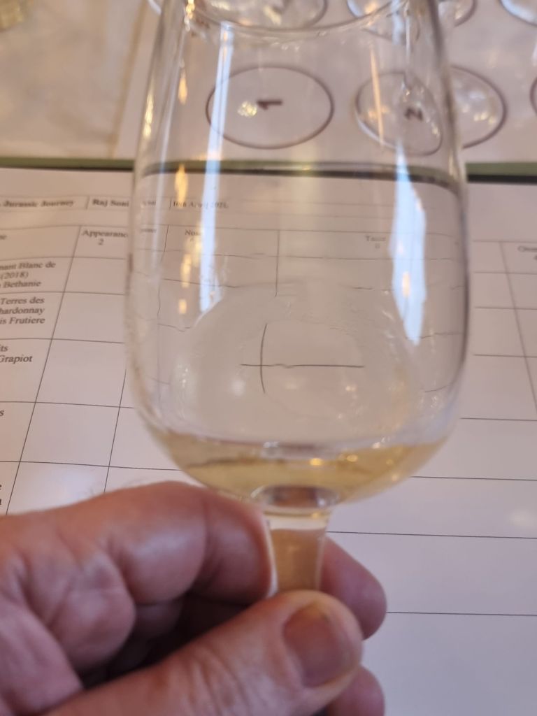 Wine number 4 – Les Chassagnes Savignin, Tony Bornard, 2020 was a very close 4th scoring the same as the 3rd place Trousseau.