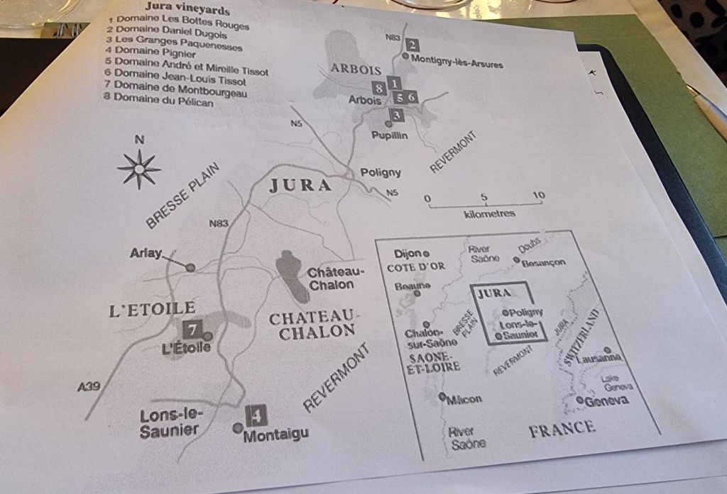 Nestled between Burgundy and the Switz border, it is a cool climate wine region (the wine growing bit is a thin strip in the middle of the Départment)