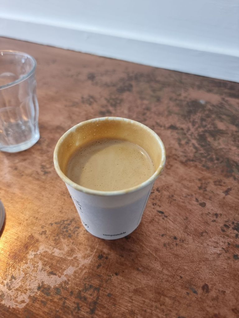I did rather miss having a proper cup, with paper one used here both for eat in and take away. I do, however, like that water is available without having to ask (