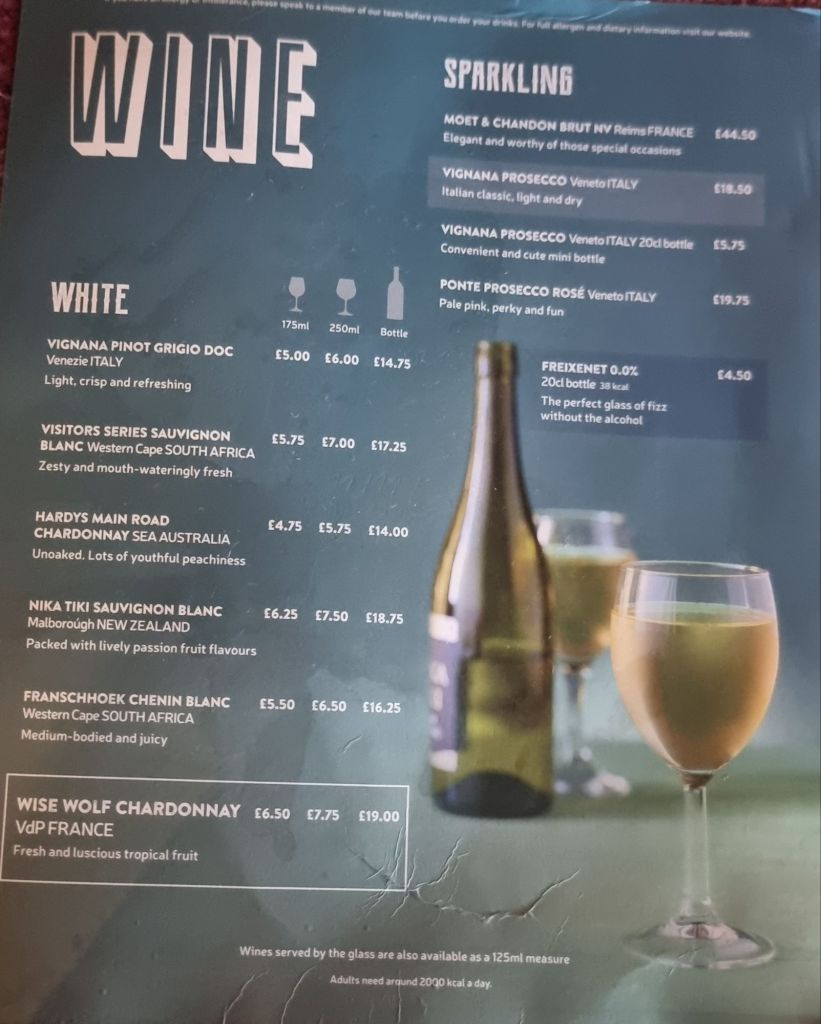 with me going for the Saffer chenin blanc (usually a good bet on the quality to price ratio) which was reduced to £6.50 for a 175ml glass as it was being taken off the list. Shame that as it is probably the best wine on there, with a nice juicy apple aroma and flavour to it.