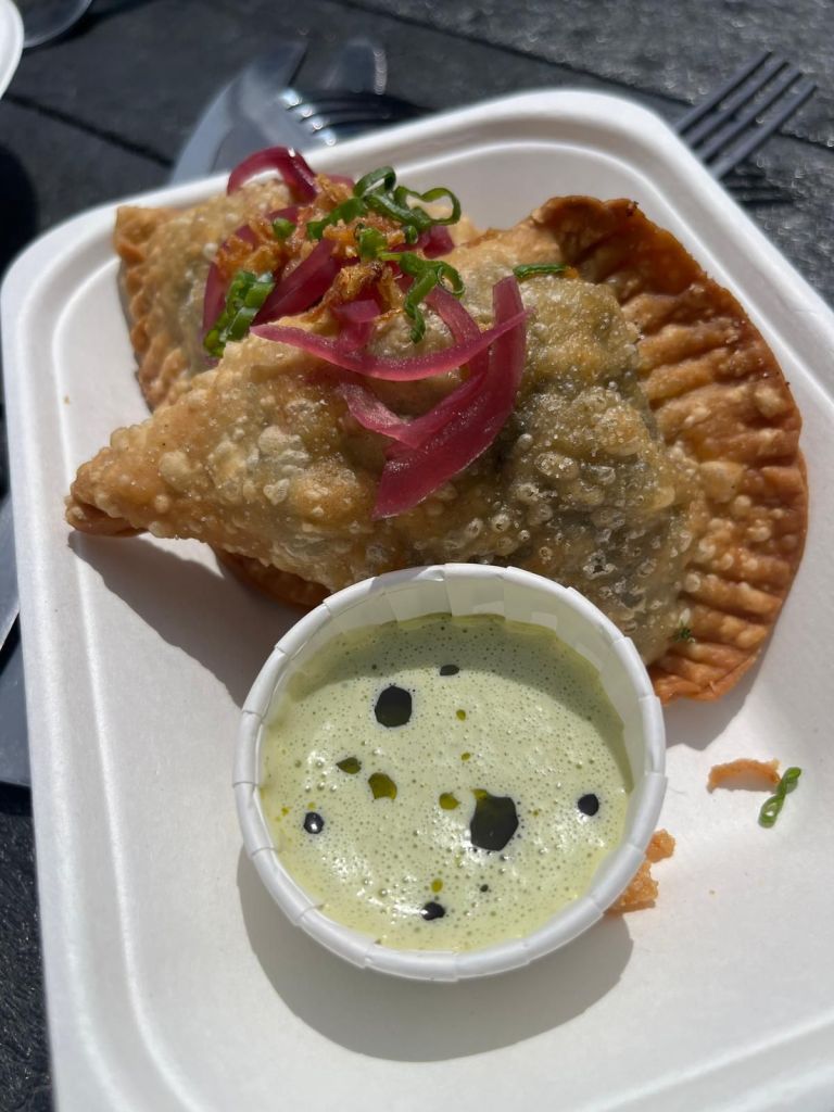 Potato and paneer, with wild garlic, samosas (£7) had a crisp shell