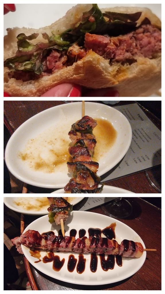 Think what I had was a duck brocheta (€6.80/€5.75). Other dishes were a lamb brocheta (I think – €4.80/£4 5 ) and a nicely rare t bone mini burger (€3.95/£3.34). Good selection of wines here, with riojas stating in the low €2s for a glass of something perfectly drinkable.