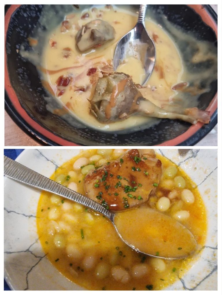 We had a few very classy dishes, with a lovely custardy slab of grilled foie, with white bean in a killer broth (€6.50/£5 50)
