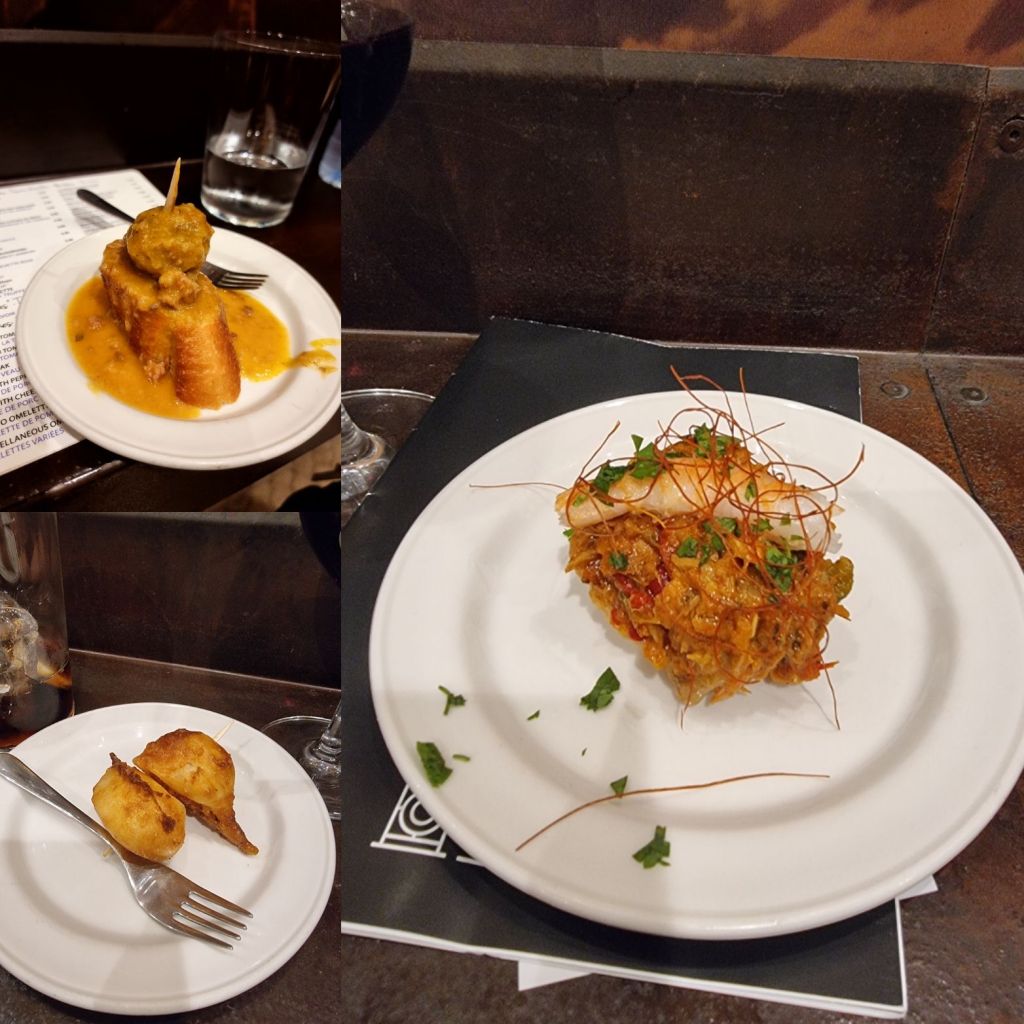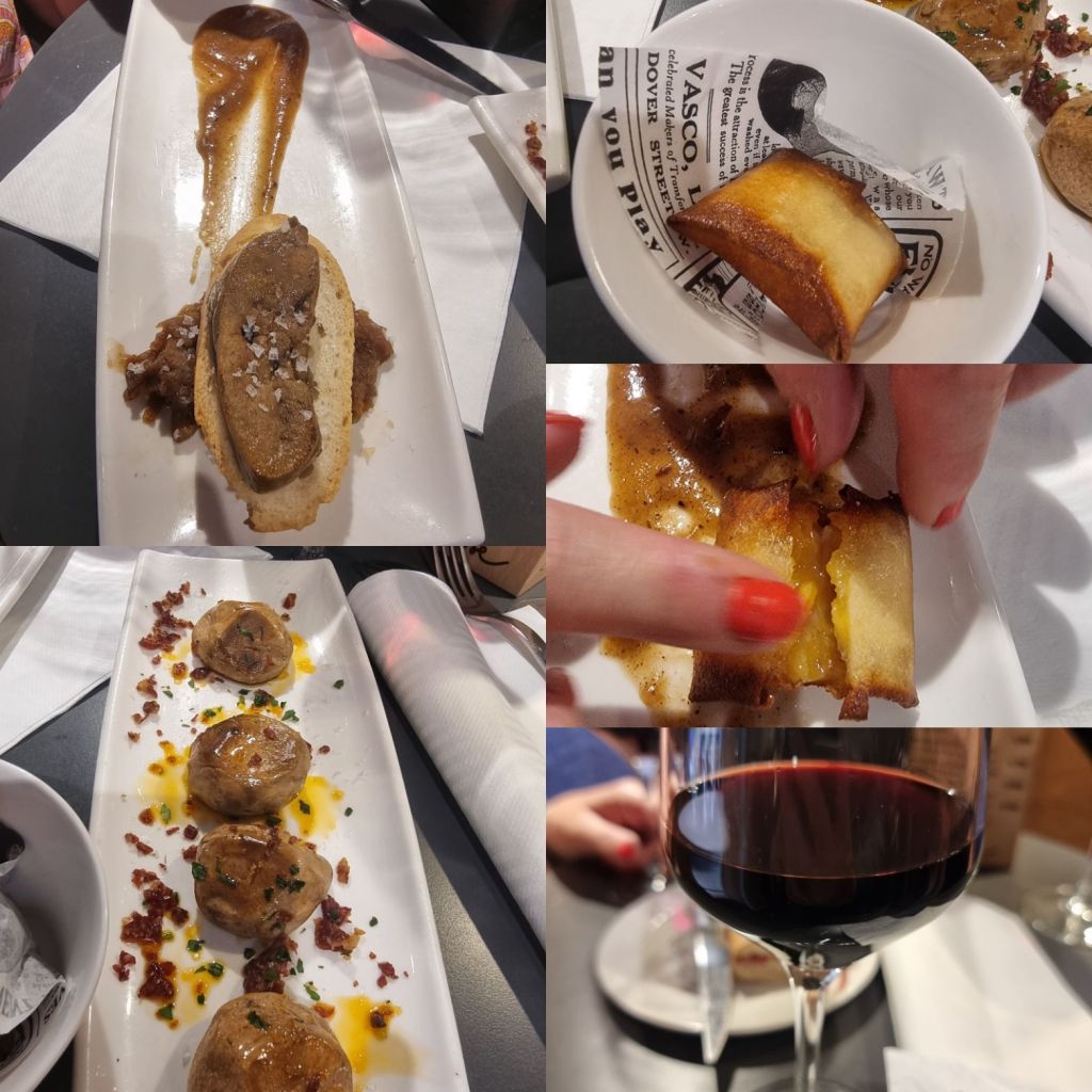 with the stand outs a really good anchovy tortilla (think €4/£3.40) and a fideua (top right – €5.50/£4.60). The former was really elevated to the next level flavour wise by the addition of anchovy, with a big umami hit. Definitely a dish greater than the sum of its parts. As always, cheap rioja and txakoli were had (€3 for a glass of Biagorri that is £15 + retail a bottle in the UK).