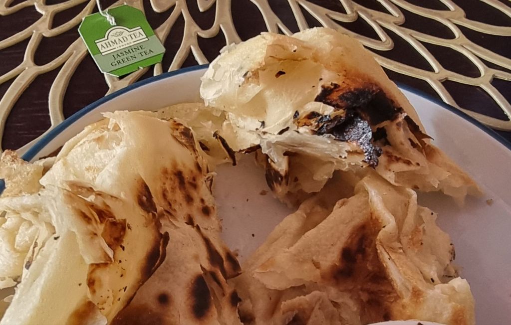 Good flake to the exterior of the two rotis, with a nicely layered buttery, elastic, interior.