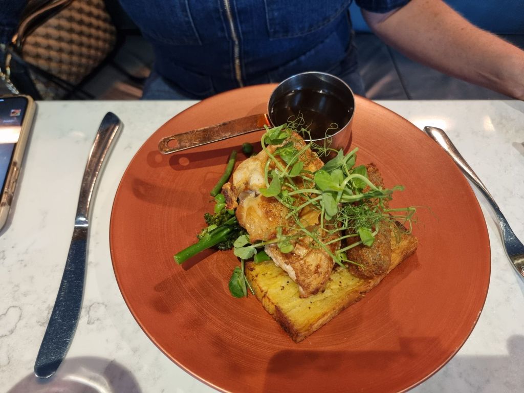 A welcome bit of greenery, in the form of tenderstem, was al dente (overcooked veg is the bane of many a hotel restaurant). The same garnish as on the pork was equally unwelcome here.
