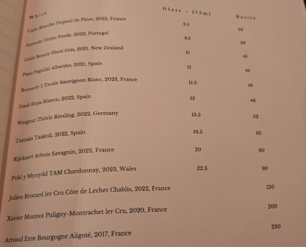 Front of house was charming (attentive, but not unduly so) and well briefed and informed on both the food and drink offering. The pace of the meal was also nicely judged, which all made for a very pleasant evening.