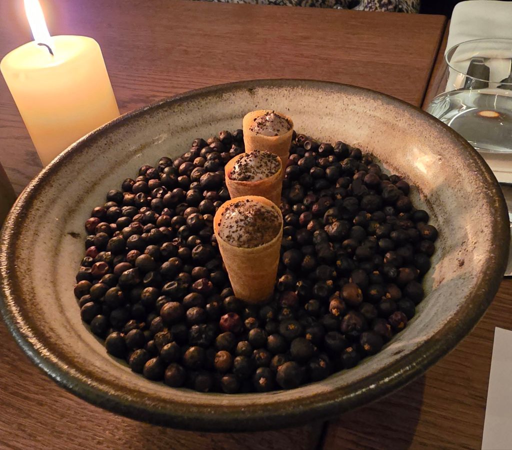 The final amuse bouche was a cone of mushroom and pickled juniper.