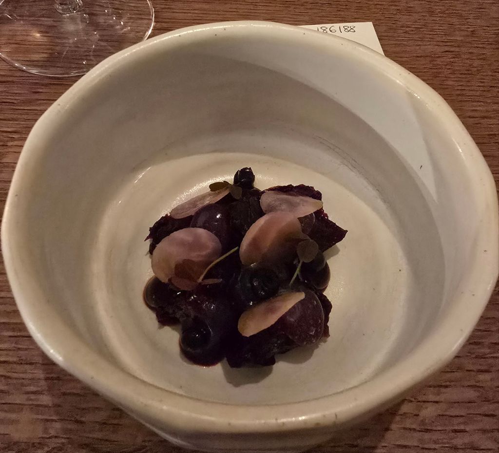 I enjoyed the raw beetroot slivers with the bilberry (a jam sort of affair), but found the pickled beetroot a tad pedestrian/Baxter’s jar- ish.