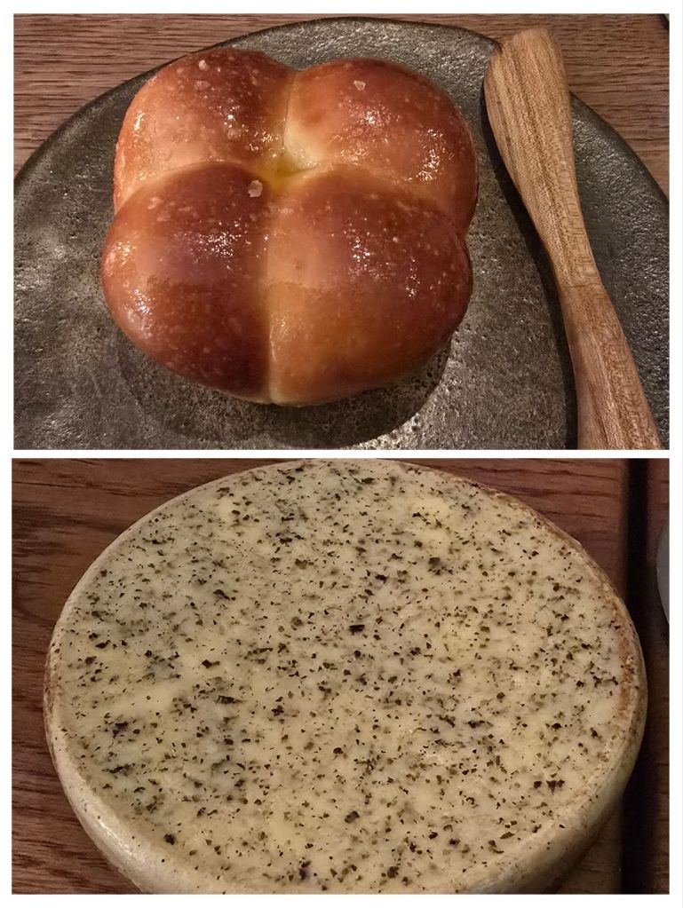 Notwithstanding this, the bit I tried solo was rather fine with a crisp salt crust and a pillow soft warm interior just begging to embrace the subtly saline laver butter.