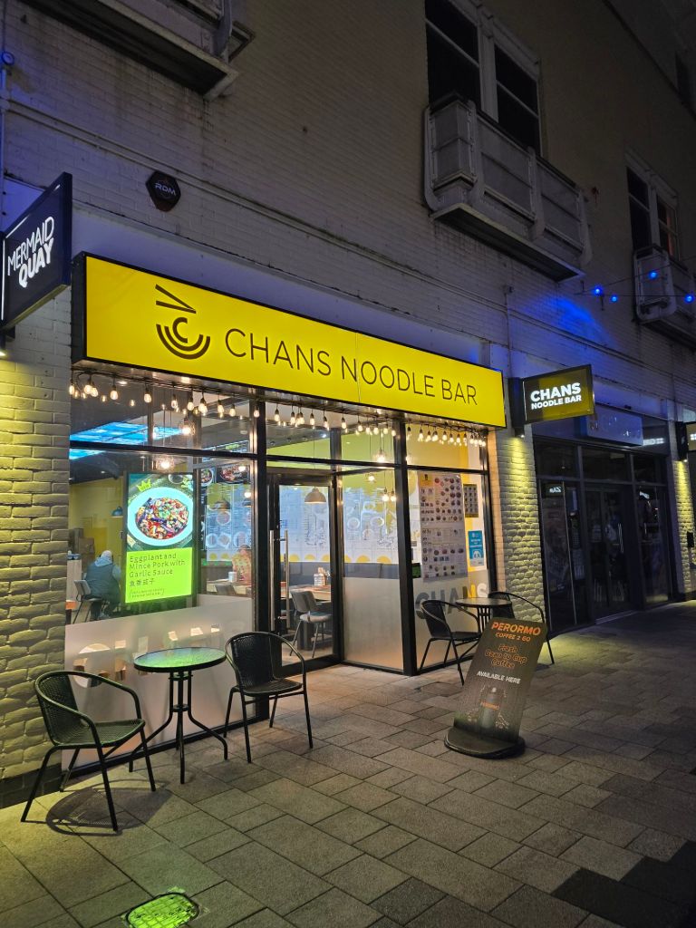 I spied from a Google search, Chan’s Noodle Bar. I feared it would be another generic (tamed down to meet Westerners’ bland tastes) joint, but thought it would probably be a better bet than most other available options.