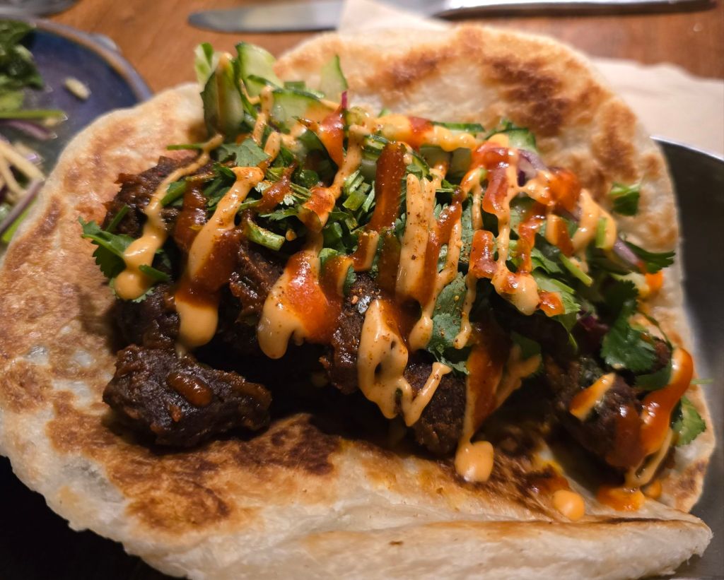 The filling was very satisfying, with the sticky coating to the beef having a welcome mix of sweet and sour. Nice zingy freshness to the cucumber that worked well as against the richness of the beef, with again plentiful coriander and Thai basil in the mix. Chilli and siracha added a bit of heat, but not too much.