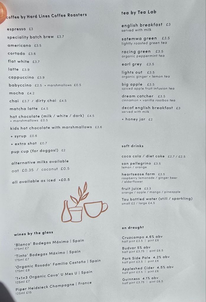 Do find it odd that a pint of beer/cider is £6.50/£6.75 and a half is £3.5/3.75. I mean, why isn’t a half just half the price of a pint, especially if it is on draft? See it all time, but it hardly encourages responsible drinking.