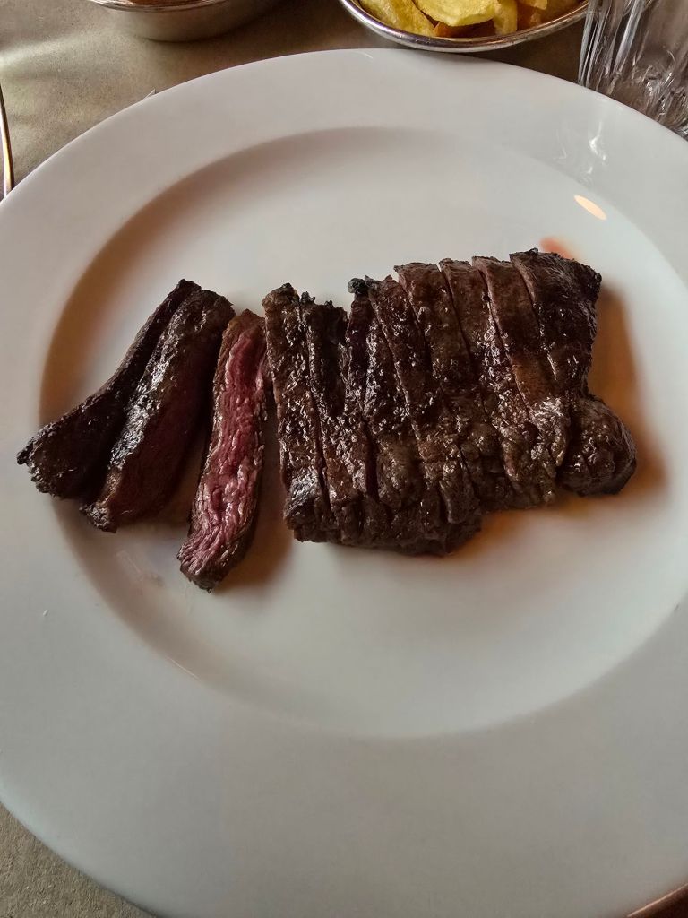 They do pack you in a bit, with our table about 6 inches from the adjacent ones, and I could easily have eaten the neighbouring table’s ribeye without having to lean over much at all. Notwithstanding this, service was very good and deserving of the (all but mandated) service charge.