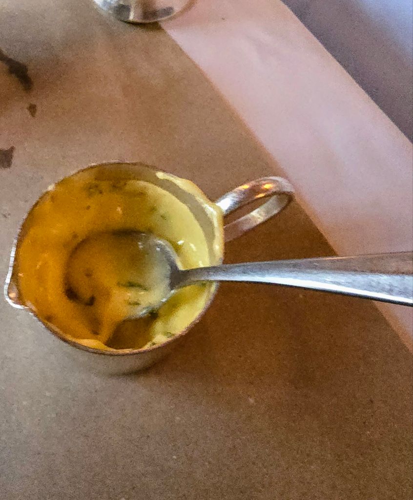 I tend to eat my steaks unadorned with sauces (J will undoubtedly accuse me of being a “bloody hypocrite” on seeing this as I often decry her for having sauce with her steak – guilty as charged m’lud, but in my defence it was part of the all in package, so….), but this stuff combined buttery richness, with tempering acidity (some may argue a touch too much, but I love a bit of sour) and a really nice thwack of herbal anis. Worked very well with the steak and was superb for dipping the chips in. I even resorted to using my finger to get the last bits of it out of the pot (without fear of the death stare from Mrs. SF).