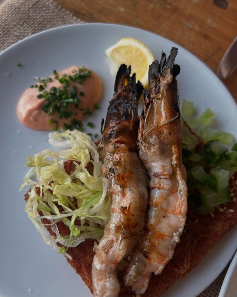Tempting as the whole plaice was, we felt it a bit too much portion wise (with the lateness of the hour) and a bit faffy filleting wise (with us multiple bottles of wine in) thus went for the prawn toast/deconstructed prawn cocktail (£13).