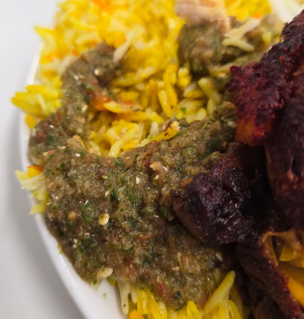 The chicken was presented very much on the bone (they seemed to take the Caribbean approach of just cleaving a whole chicken into bits), which may not be to some people’s taste, and with the only utensil provided being a spoon it was very much a case of getting handsy with my mandi. Personally, I love getting down and dirty with my food and using my fingers is never a problem (unless Mrs. SF is with me, in which case I get the death stare should I even comtemplate a non cutlery food foray).