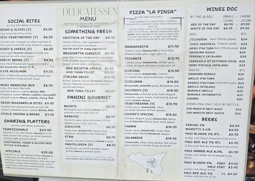 As it was a working day neither of us were drinking booze and defaulted to soft drinks. I forgot to take a picture of that bit of the menu, but the selection is one that offers more than your standard sodas, with an interesting selection of Sicilian softies