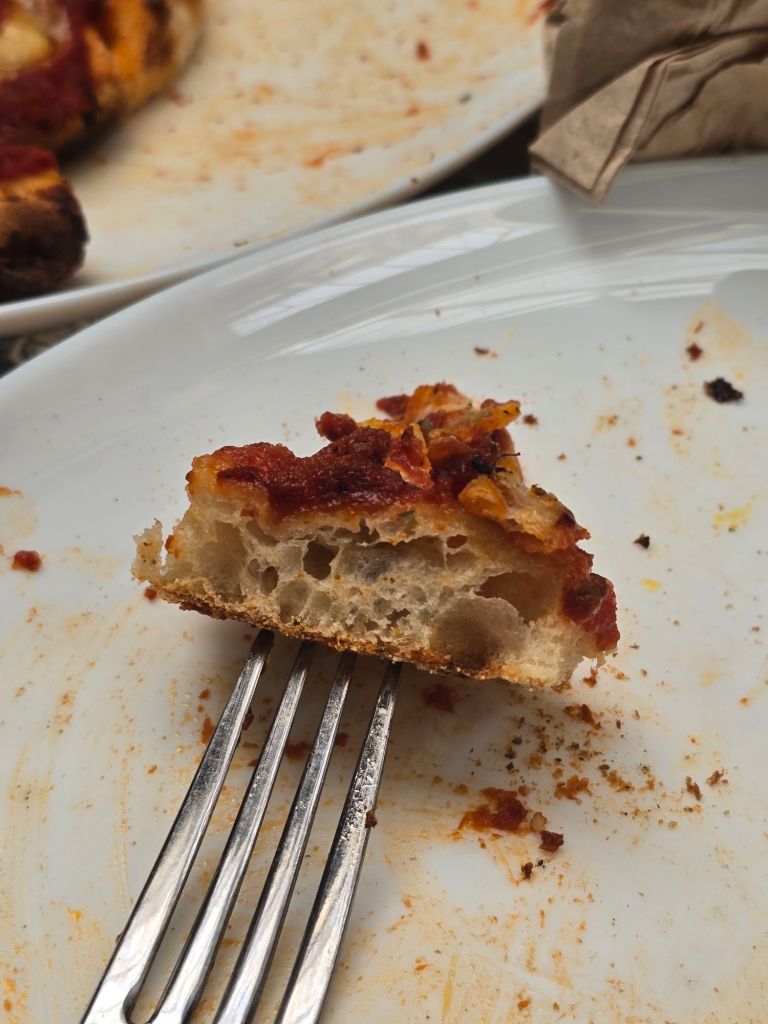 Nice bit of heat from the njuda and a good quality piccante salami, with the hot honey adding sweetness to balance out the heat. I like njuda, but it can sometimes be laid on a bit thick and thus totally dominate proceedings. Here, it was applied more judiciously than some places and thus made its presence felt without overwhelming the other ingredients.