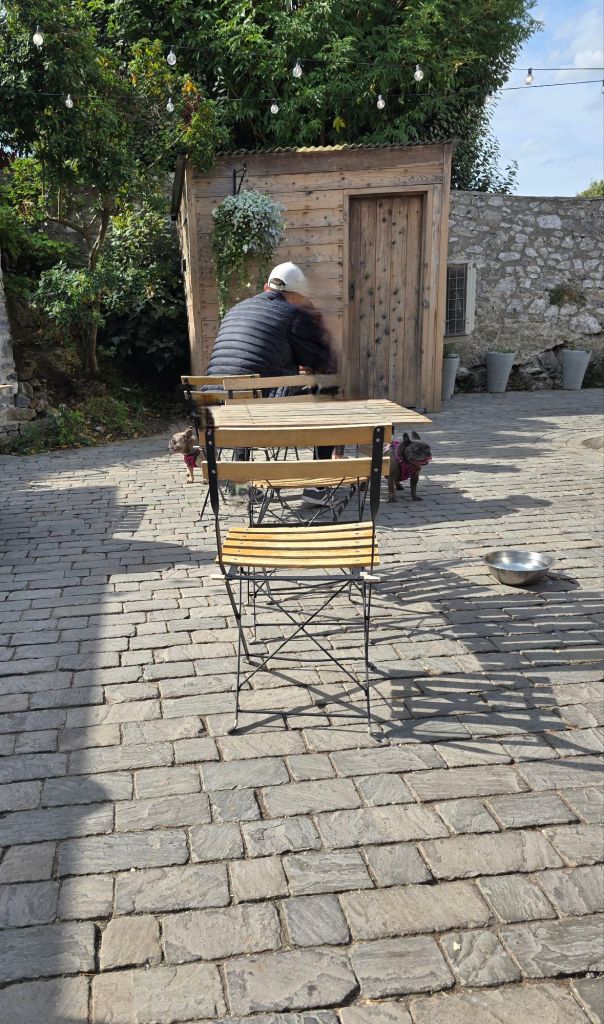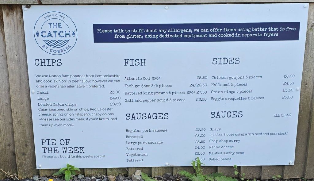 Having built up an appetite with a good 10,000 plus steps beach walk (still life in the old dog – talking about both Oscar aka Dick the dog and me), I decided a bit of (nothing too fancy) lunch on the way back was in order and Cobbles on the road to Ogmore by the sea rather fitted the bill, with a reputation for fulsome doorstep sarnies. As such, it seemed an ideal (door)stop on the way back from the beach.
