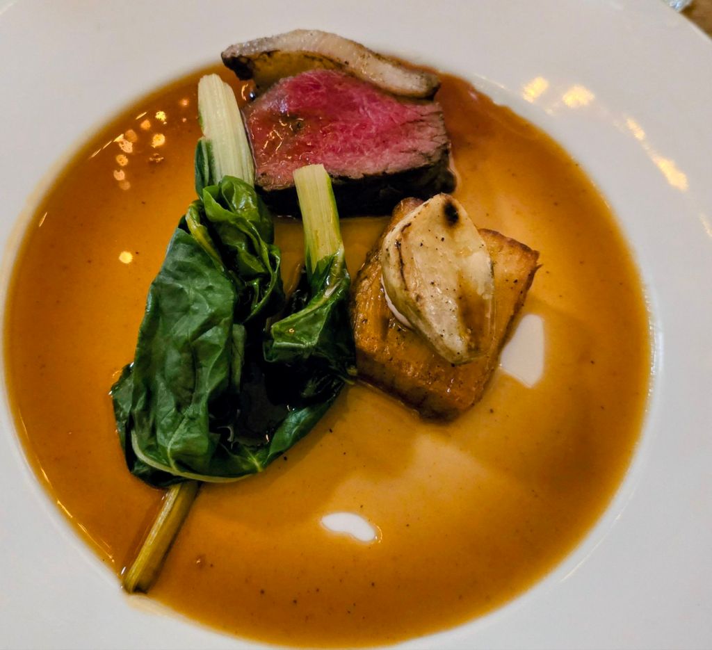 The main course was a ruby red bit of venison loin, which again was cooked on point with a good crust and a rare interior.