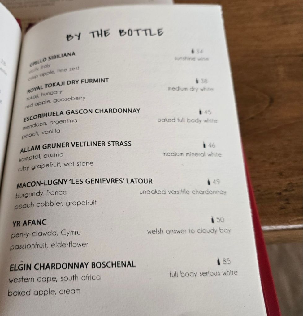 The Royal Tokji Furmint is a really good wine, which retails at about £14 (on the list here at £38 so pretty fair mark up by UK standards),