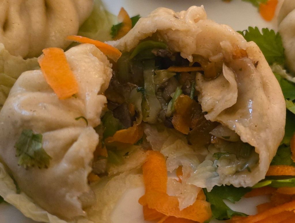 The filling was a mix of mushroom, cabbage and other assorted veg, with garlic, ginger and coriander,