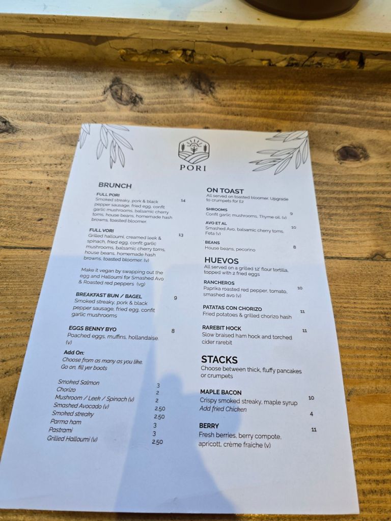 I rather enjoyed my late breakfast/early lunch at Pori, with a solid, well flavoured offering in the form of my huevos rarebit hock dish and a rather good coffee.