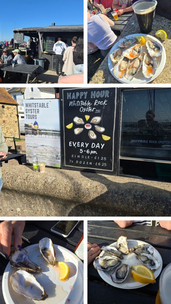 I really love oysters and for value I really don’t think you can beat Oyster Happy Hour (every day 5pm – 6pm) in the Kent town of Whitstable. This gets you oysters for a mere £1.25 a pop or 6 for £6.25 (under £1.05 a pop). I mean why have one when you can have six!
