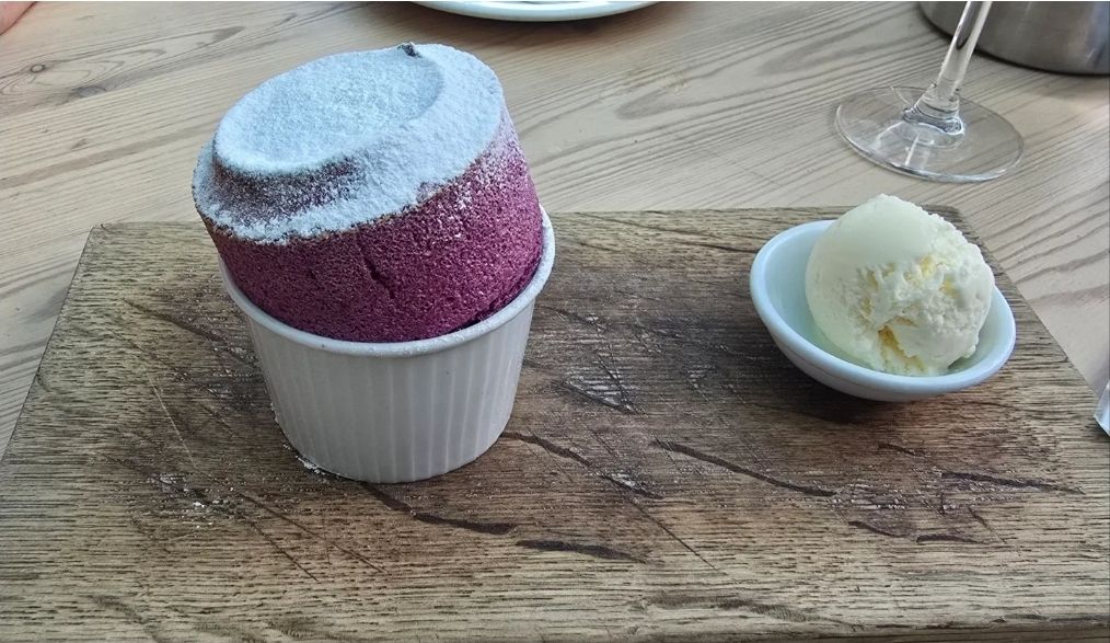 A close runner up was a textbook blackcurrent souffle, with a cream cheese icecream, at the Sportman near Whitstable.